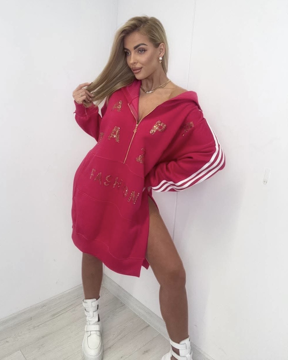 Modelka w rozmiarze S o wzroście 174 cm. Ma na sobie rozmiar uniwersalny.