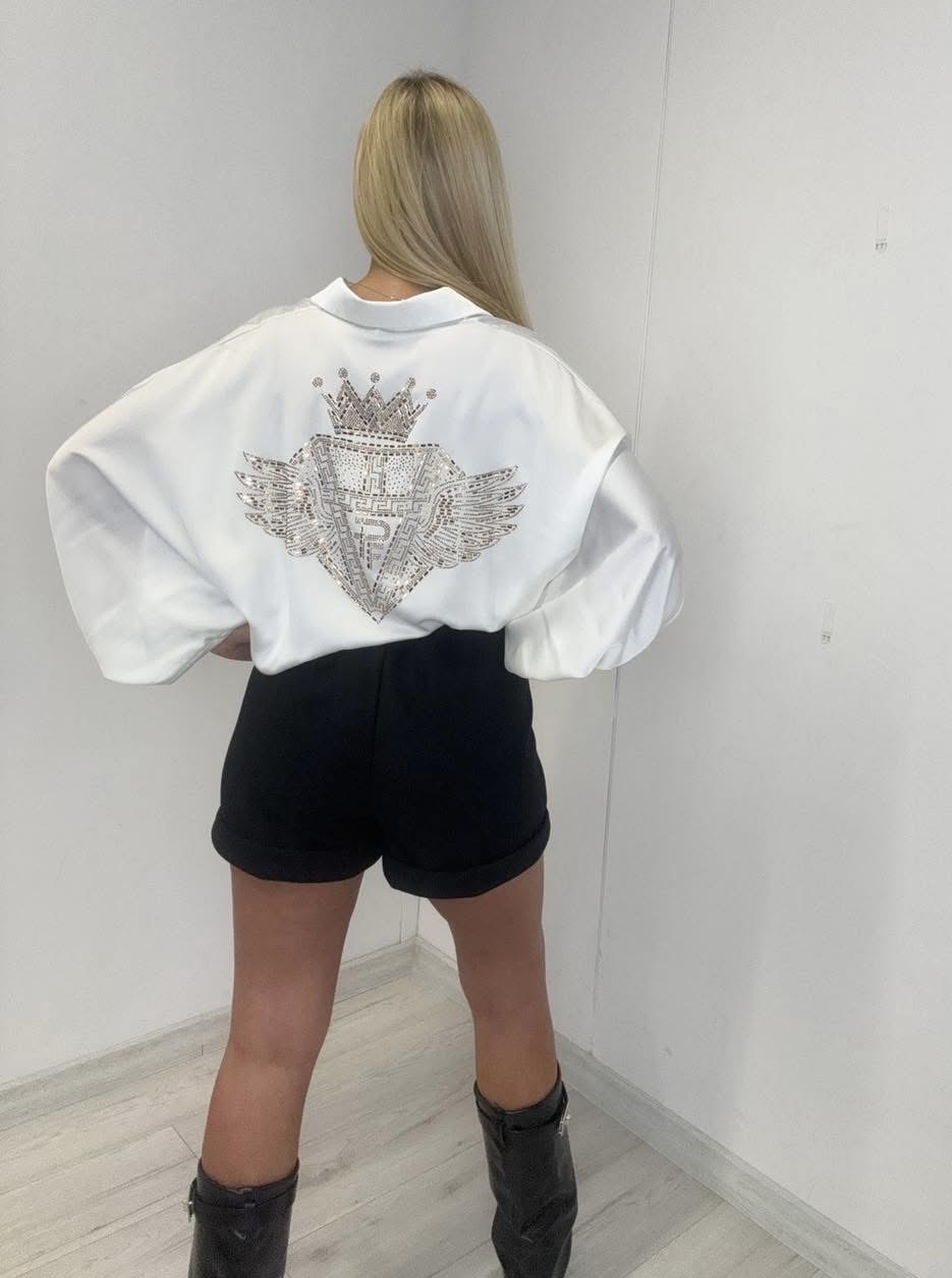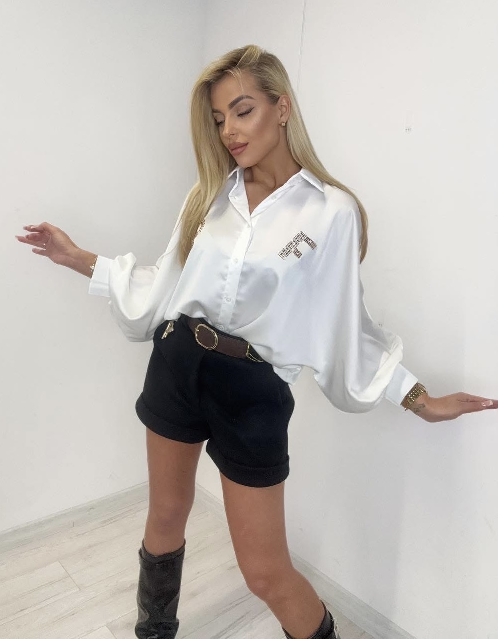 Modelka w rozmiarze S o wzroście 174 cm. Ma na sobie rozmiar uniwersalny.
