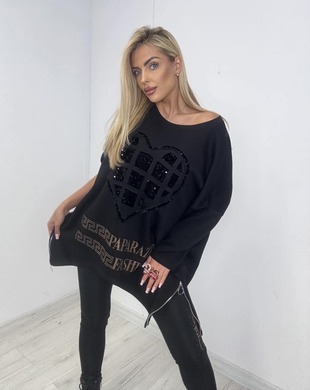 Modelka w rozmiarze S o wzroście 174 cm. Ma na sobie rozmiar uniwersalny.
