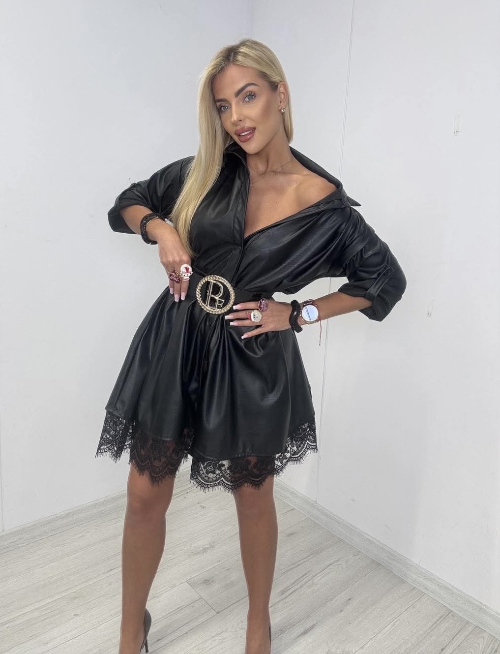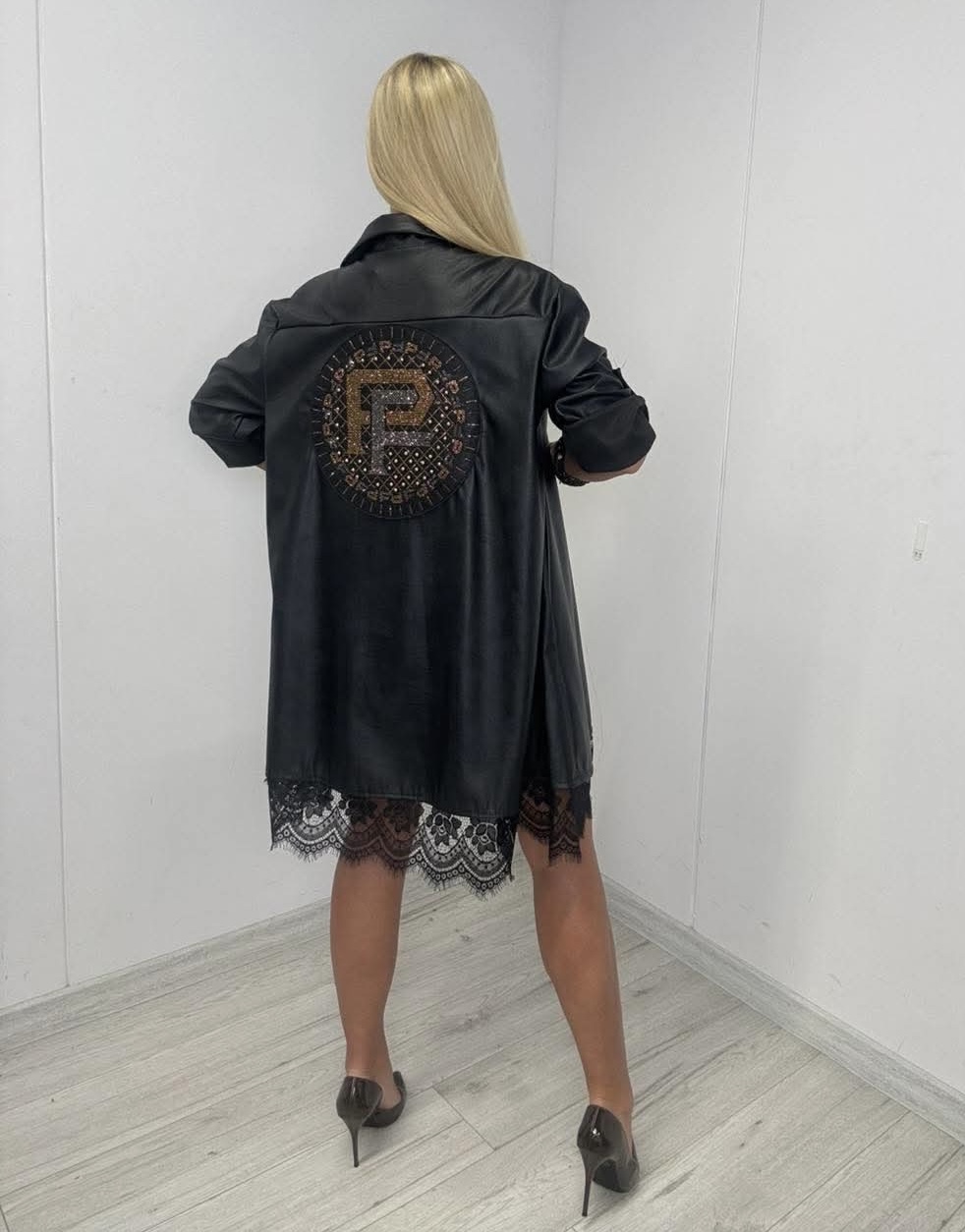 Sukienka ze skóry ekologicznej z koronką.