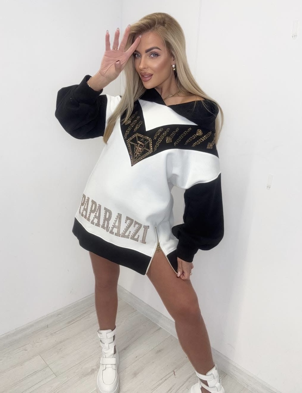 Modelka w rozmiarze S o wzroście 174 cm. Ma na sobie rozmiar uniwersalny.