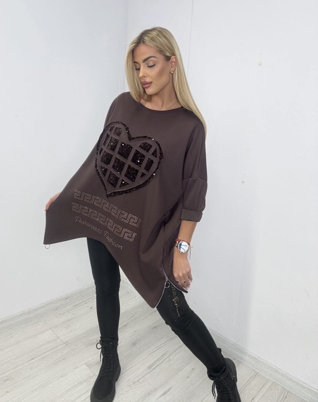Modelka w rozmiarze S o wzroście 174 cm. Ma na sobie rozmiar uniwersalny.