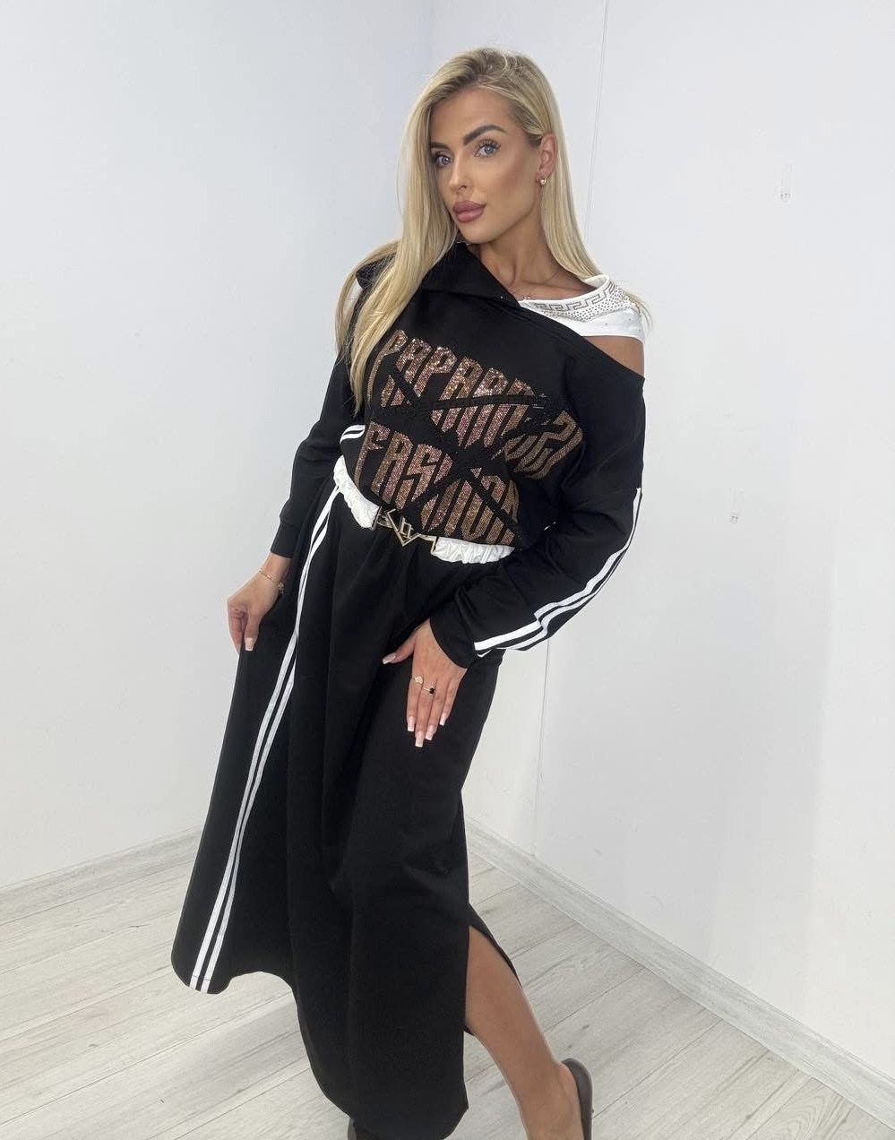 Modelka w rozmiarze S o wzroście 174 cm. Ma na sobie rozmiar uniwersalny.