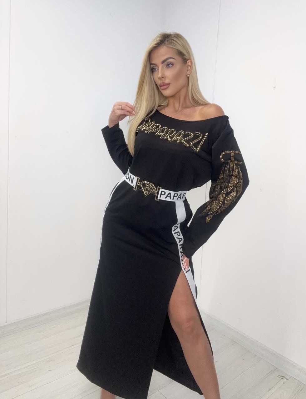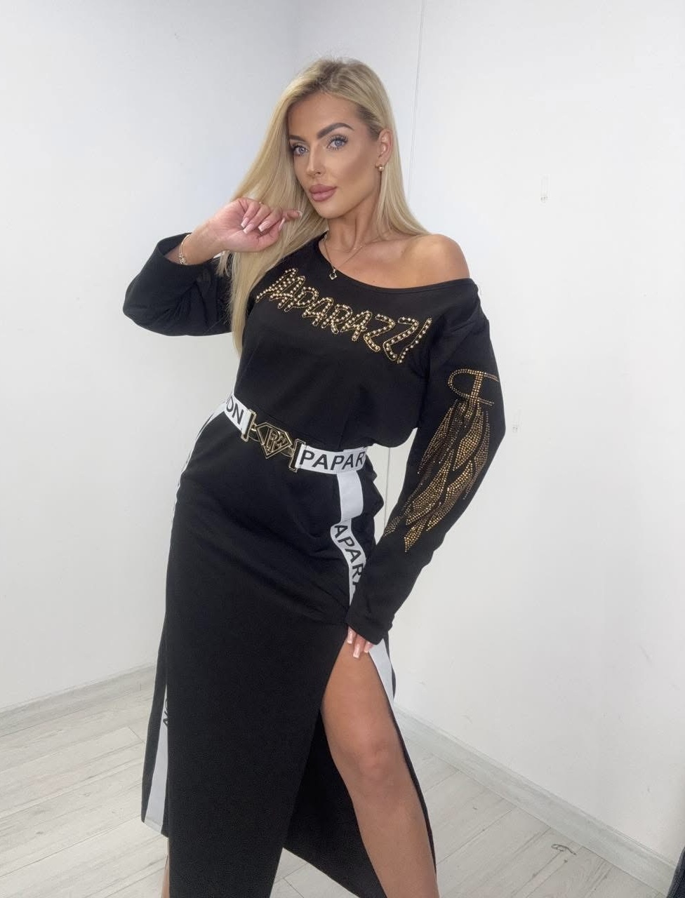 Modelka w rozmiarze S o wzroście 174 cm. Ma na sobie rozmiar uniwersalny.