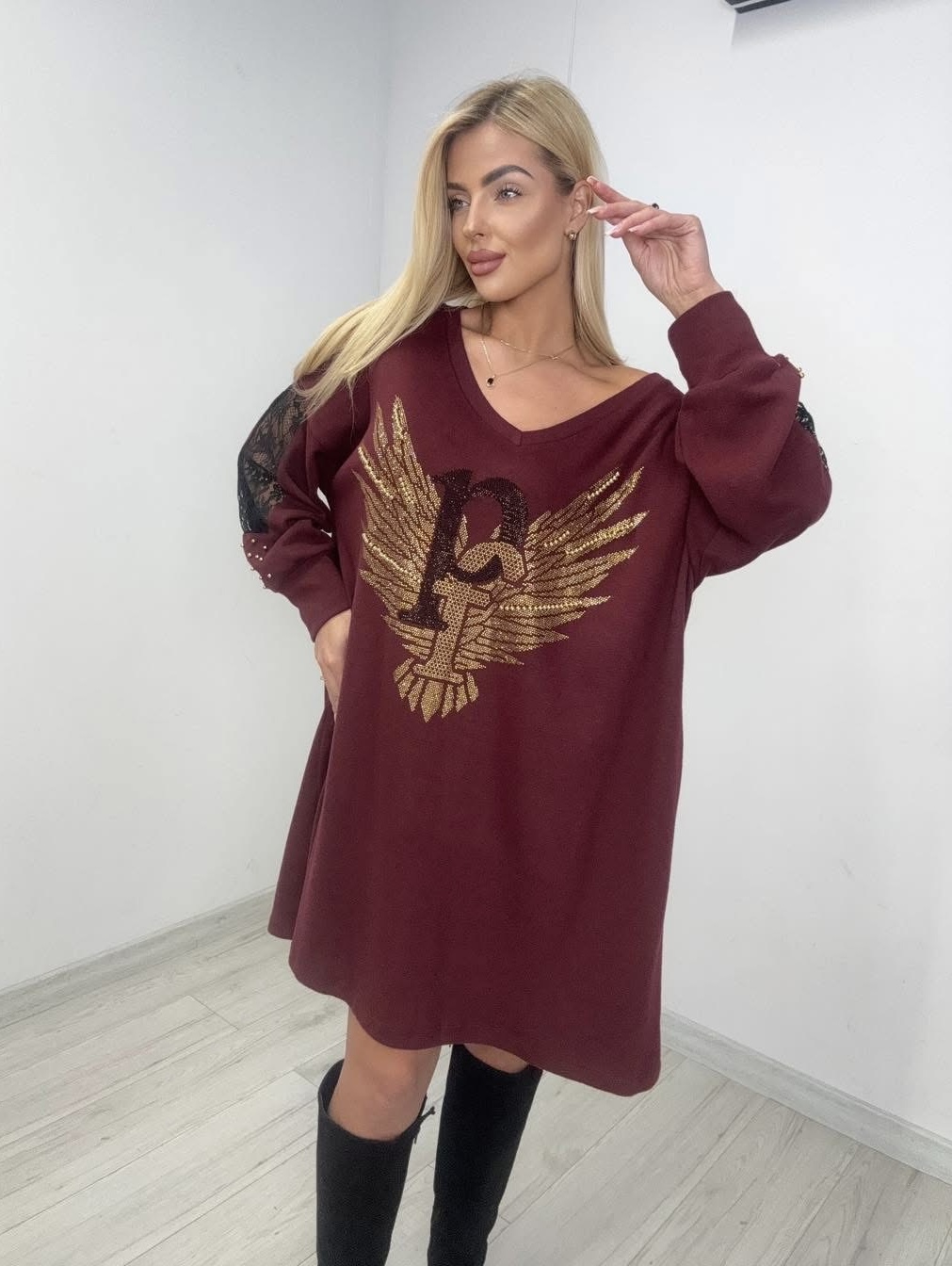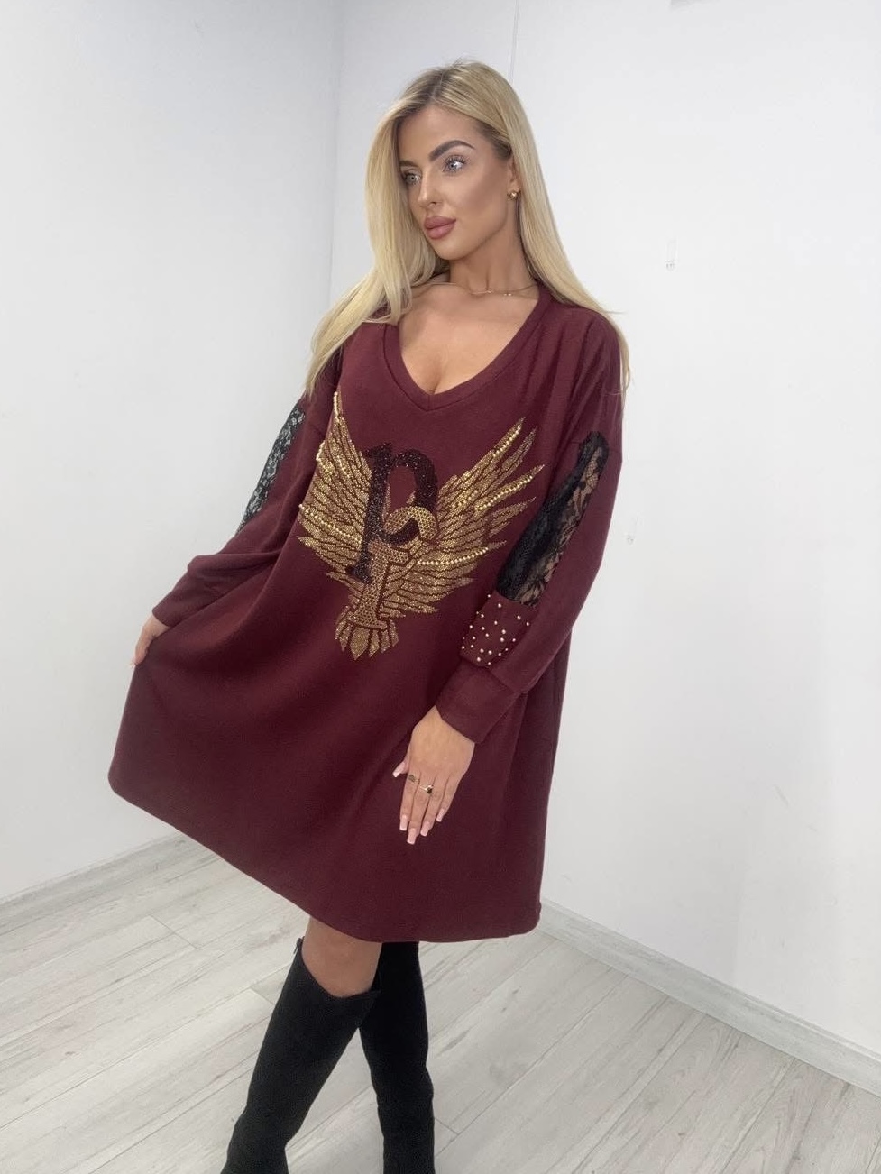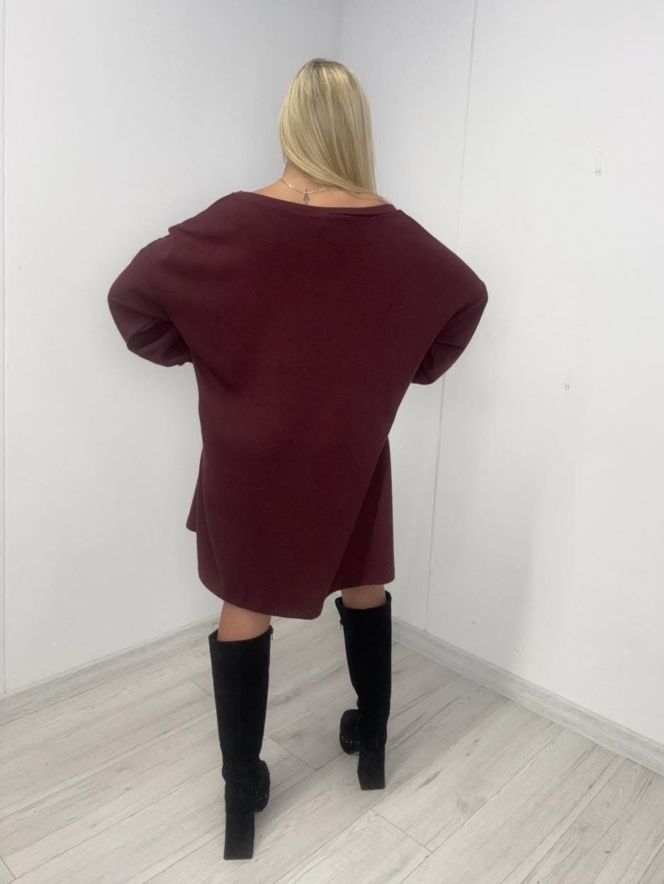 Modelka w rozmiarze S o wzroście 174 cm. Ma na sobie rozmiar uniwersalny.