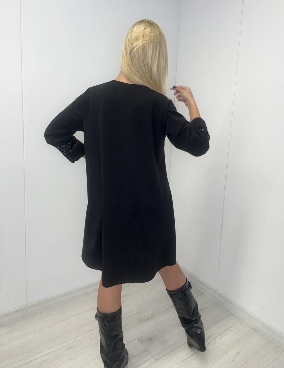 Modelka w rozmiarze S o wzroście 174 cm. Ma na sobie rozmiar uniwersalny.