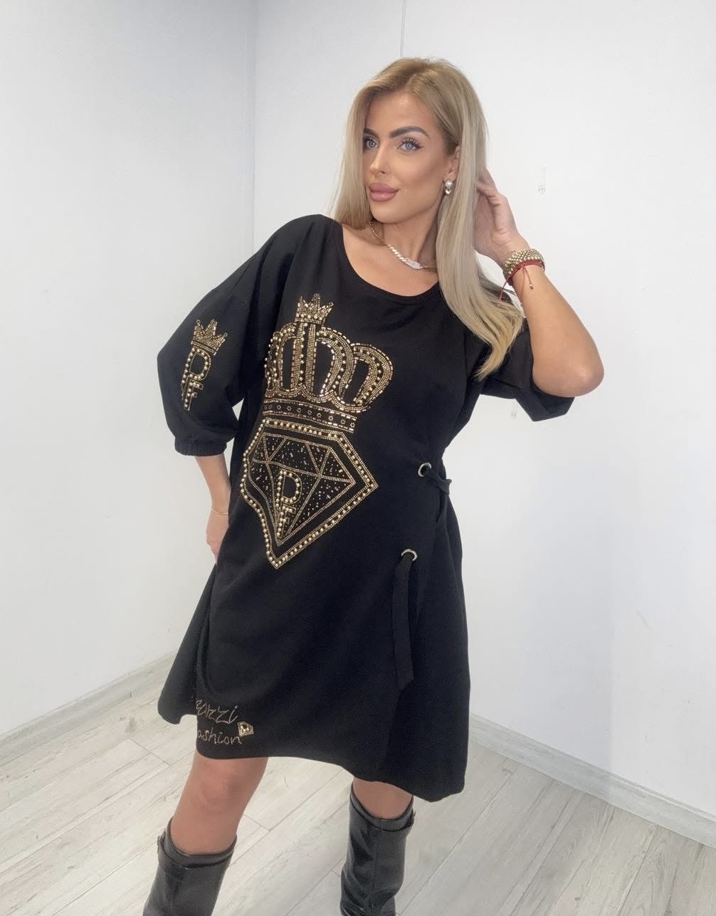 Sukienka dresowa ( bawełniana) zdobiona cyrkoniami.