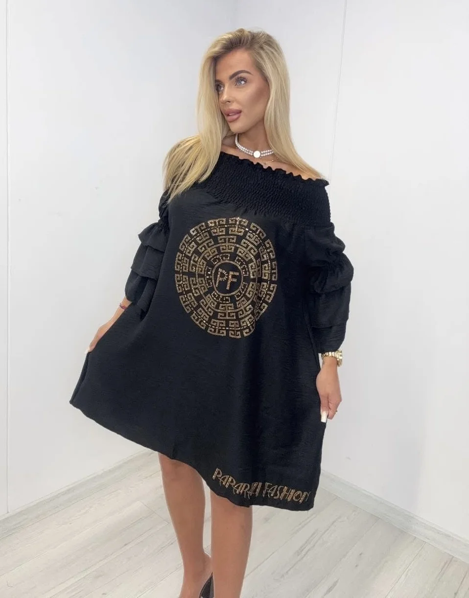 Letnia sukienka typu hiszpanka. W ramionach gumeczki.