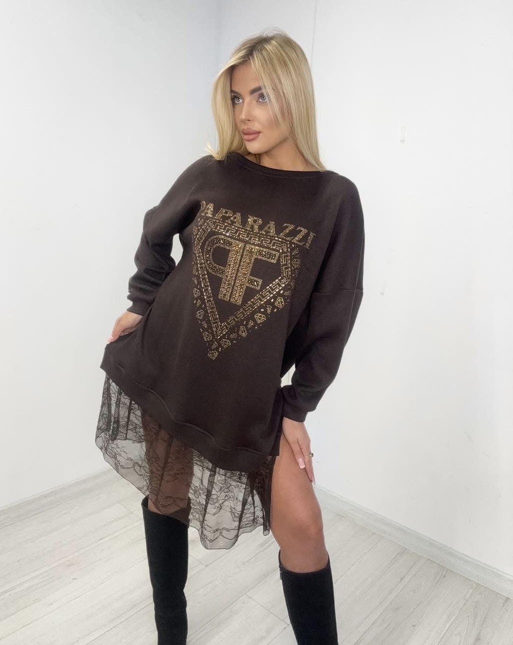 Modelka w rozmiarze S o wzroście 174 cm. Ma na sobie rozmiar uniwersalny.