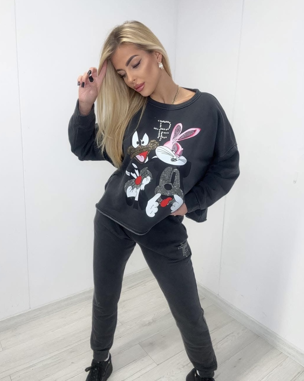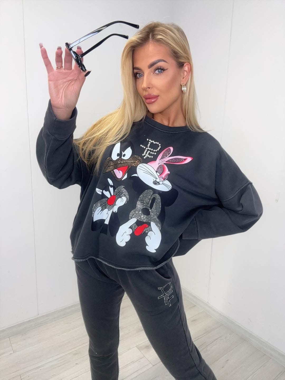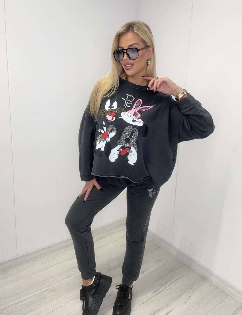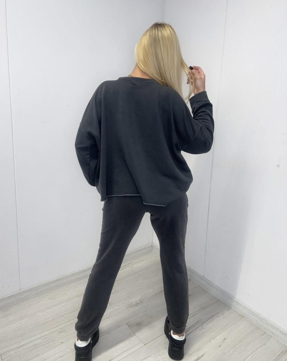 Komplet dresowy ze spodniami z gumką w pasie.