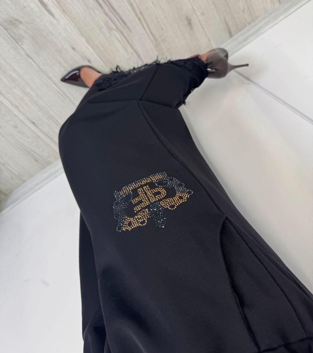 Modelka w rozmiarze S o wzroście 174 cm. Ma na sobie rozmiar uniwersalny.