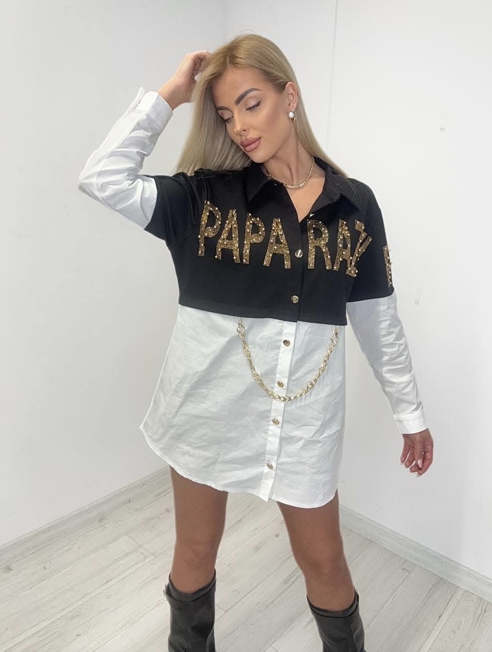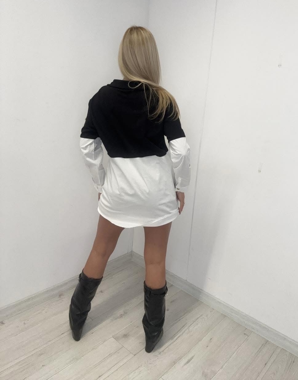 Modelka w rozmiarze S o wzroście 174 cm. Ma na sobie rozmiar uniwersalny.