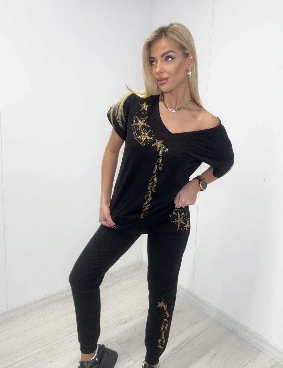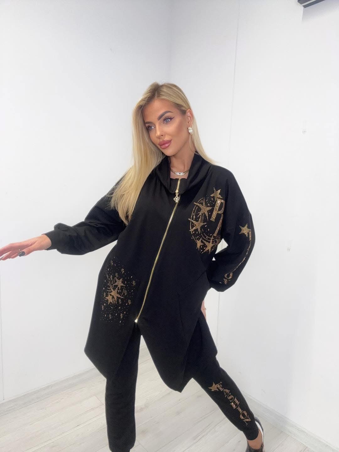 Komplet dresowy ( bawełniany): bluza, bluzka, spodnie z gumką w pasie.