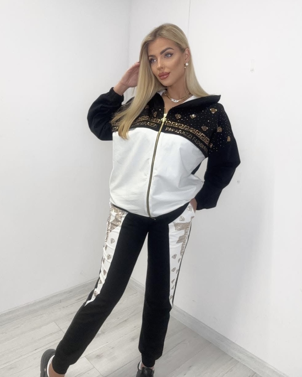 Komplet dresowy ( bawełniany): bluza i spodnie z gumką w pasie.