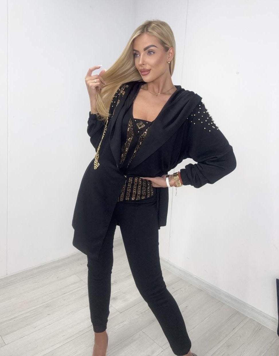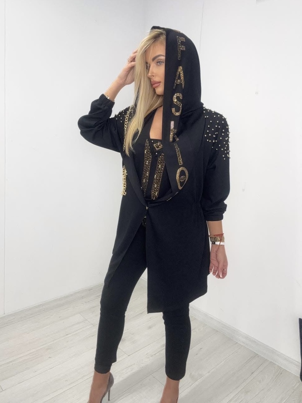 Komplet 3 części; leginsy, bluzka, narzutka.