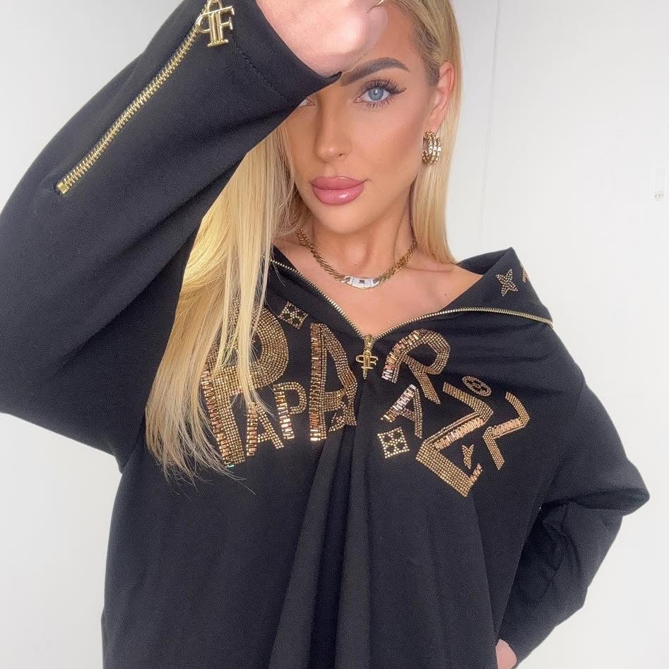 Modelka w rozmiarze S o wzroście 174 cm. Ma na sobie rozmiar uniwersalny.
