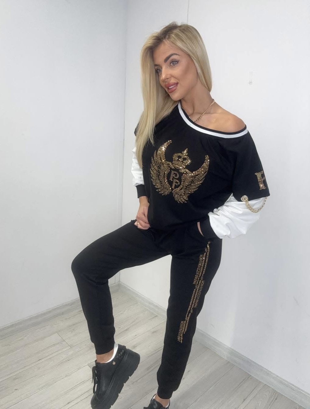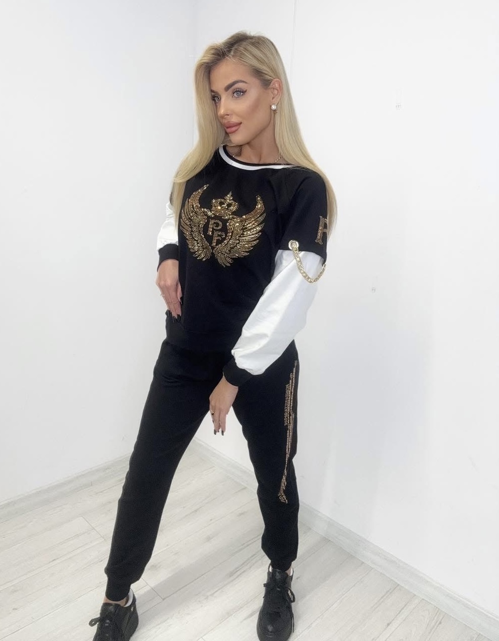 Komplet dresowy ( bawełniany): bluza i spodnie z gumką w pasie.