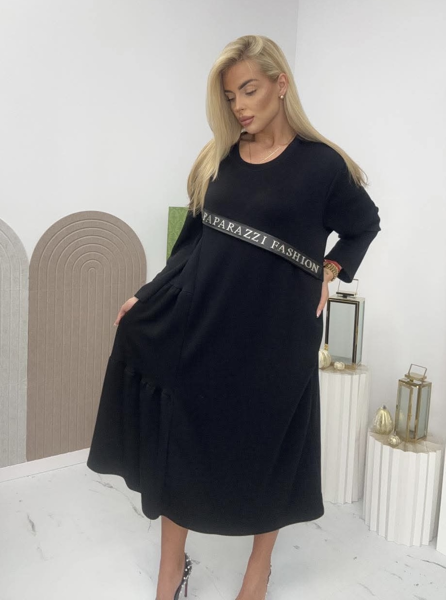 Sukienka maxi z napisem na eko skórze.