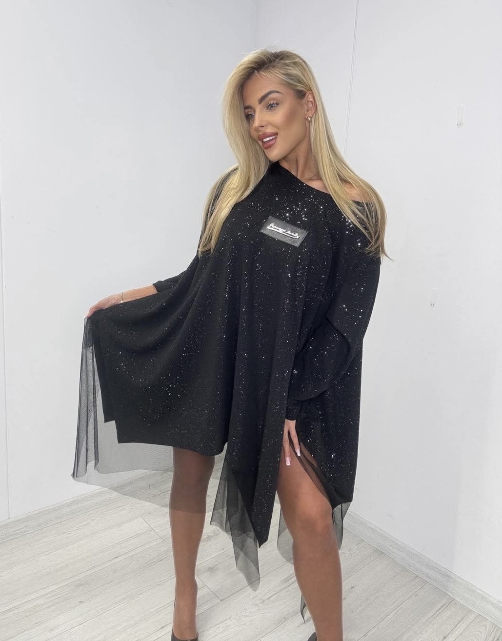 Modelka w rozmiarze S o wzroście 174 cm. Ma na sobie rozmiar uniwersalny.